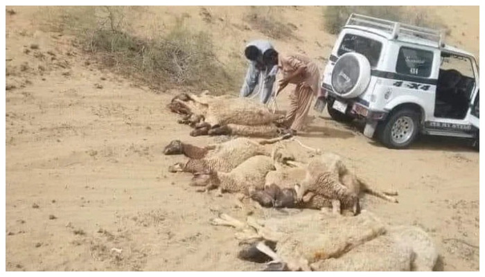 بہاولپور: صحرائے چولستان میں قلعہ ڈیراور کےقریب دلوش ڈھار میں 113 بھیڑیں ہلاک ہونے کا افسوسناک واقعہ پیش آیا۔ ڈائریکٹر لائیو اسٹاک کے مطابق ریوڑ چولستان سے بھوکا پیاسا کٹی گندم کے کھیتوں میں پہنچا تھا اور بھیڑوں کی ہلاکت زیادہ مقدار میں گندم کے سٹے کھانے سے ہوئی۔ ڈائریکٹر لائیو اسٹاک نے بتایا کہ ریوڑ میں 600 سے زائد بھیڑیں شامل تھیں جن میں باقی محفوظ رہیں۔ محکمہ لائیو اسٹاک کے مطابق بھیڑوں کی ہلاکت کسی پراسرار بیماری سے نہیں ہوئی، تحقیقاتی رپورٹ میں ہلاکت کی وجہ گرین اوور لوڈ ہے۔