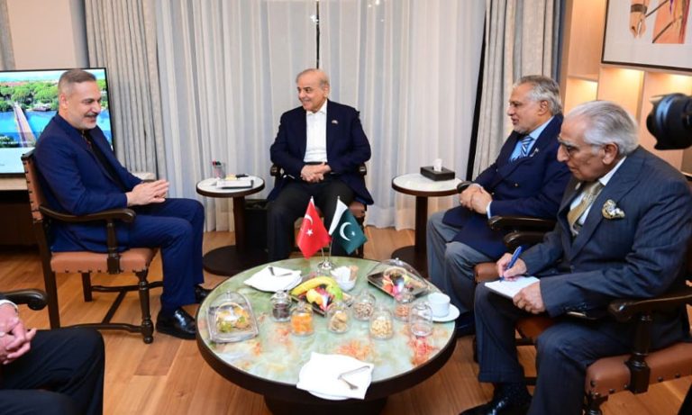 وزیرِ اعظم محمد شہباز شریف سے جمہوریہ ترکیہ کے وزیرِ خارجہ عزت مآب حاقان فیدان نے انطالیہ میں ملاقات کی. وزیرِ اعظم ترکیہ کے سرکاری دورے پر آج انطالیہ پہنچے ہیں۔ نائب وزیراعظم و وزیر خارجہ سینیٹر محمد اسحاق ڈار اور معاون خصوصی سید طارق فاطمی بھی مالاقات میں موجود تھے۔ وزیر خارجہ حاقان فیدان نے وزیر اعظم شہباز شریف کا پرتپاک استقبال کیا اور انطالیہ ڈپلومیسی فورم میں شرکت پر ان کا شکریہ ادا کیا۔ انہوں نے کہا کہ صدر رجب طیب ایردوان انطالیہ ڈپلومیسی فورم کے موقع پر وزیراعظم سے ملاقات کے منتظر ہیں۔ وزیر اعظم محمد شہباز شریف نے پرتپاک استقبال اور روایتی مہمان نوازی پر وزیر خارجہ حاقان فیدان کا شکریہ ادا کیا۔ انہوں نے کہا کہ یہ باعث خوشی ہے کہ وہ اپنے دوسرے گھر ترکیہ کے دورے پر ہیں۔ انطالیہ ڈپلومیسی فورم میں شرکت اور صدر رجب طیب ایردوان سے انطالیہ ڈپلومیسی فورم کے موقع پر ملاقات انکے باعث مسرت ہے.